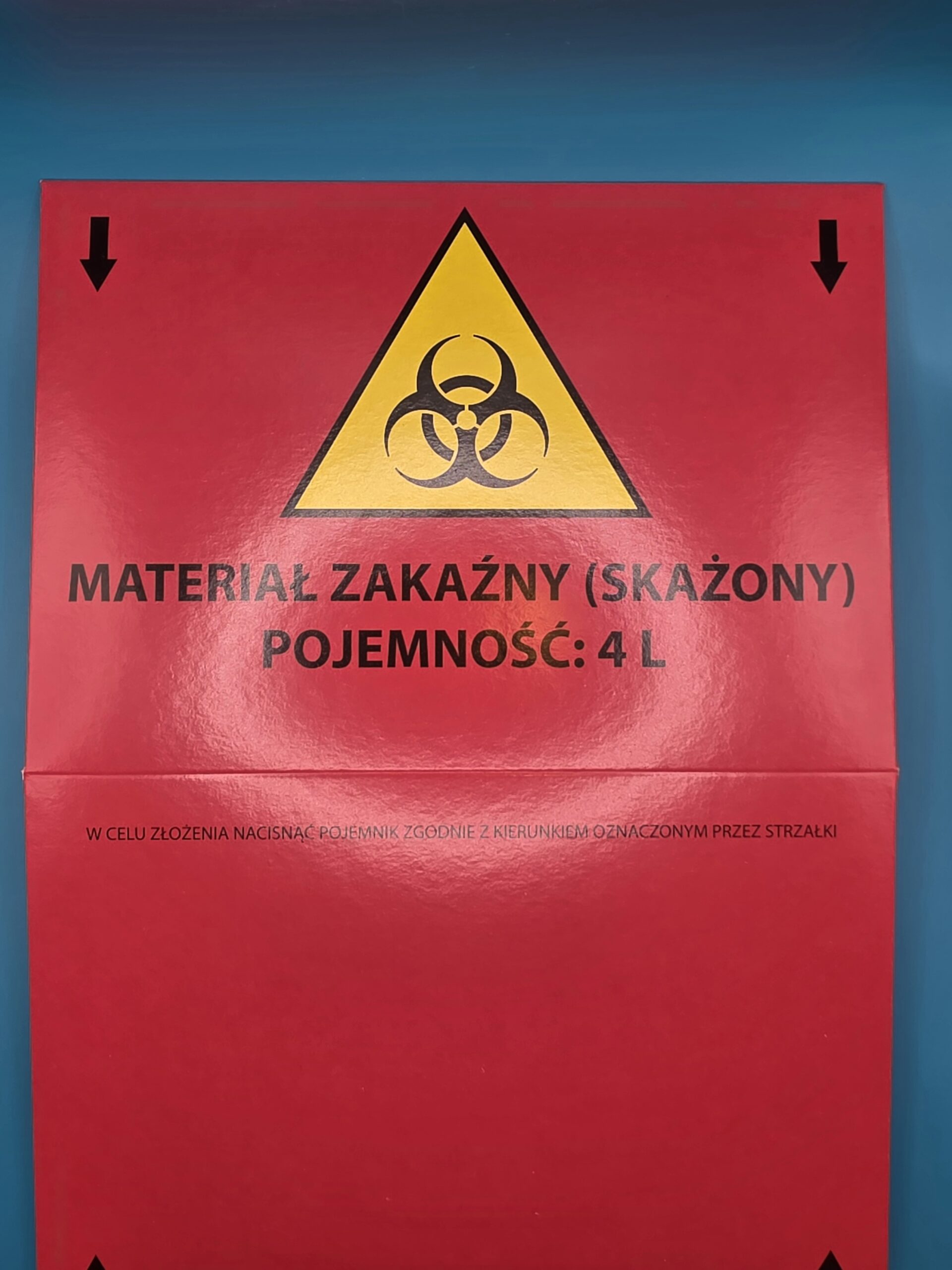 nadaje się do zbiórki m.in. zużytych igieł, pipet, skalpeli oraz innych suchych odpadów